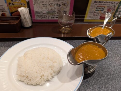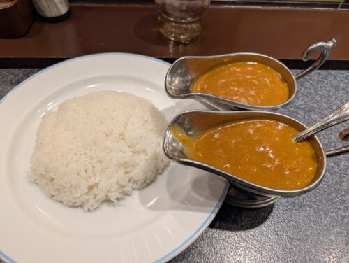 加えて、ライス大盛とカレーソース大盛を注文しました。ライス大盛はわかりますが、出てきたカレーソースが笑えました。