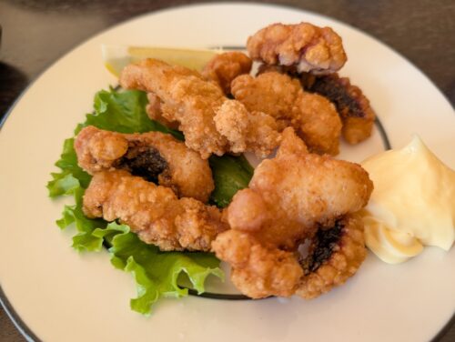 タコの唐揚げを頼みましたが、これが最高に美味しい。揚げたてで、大きく、柔らかくて。